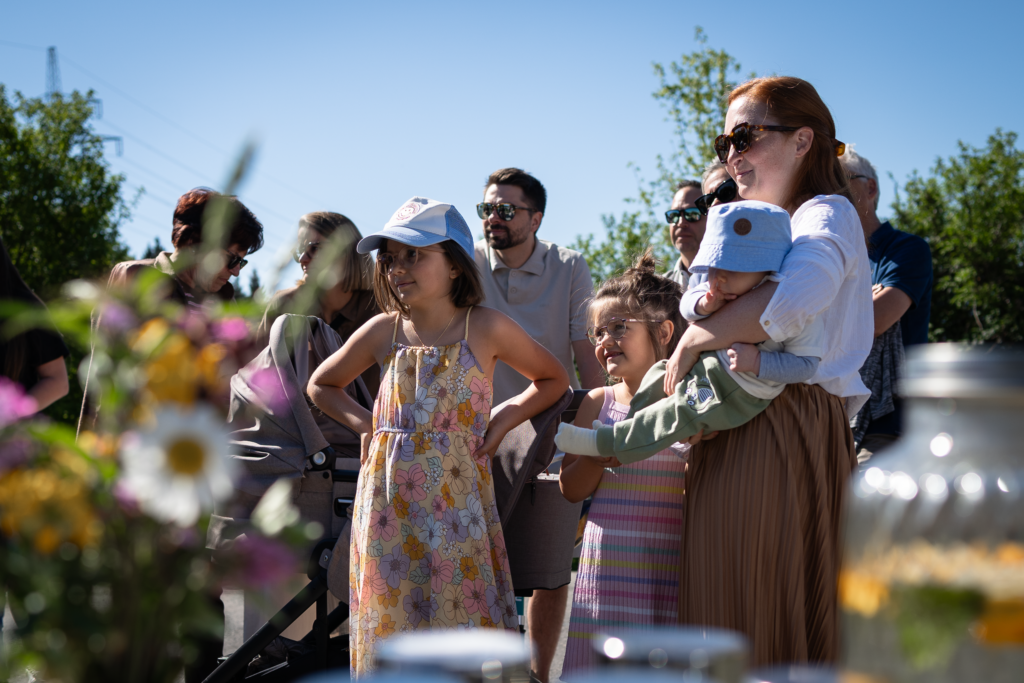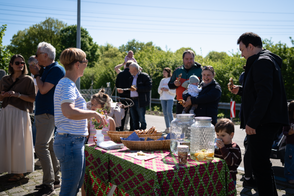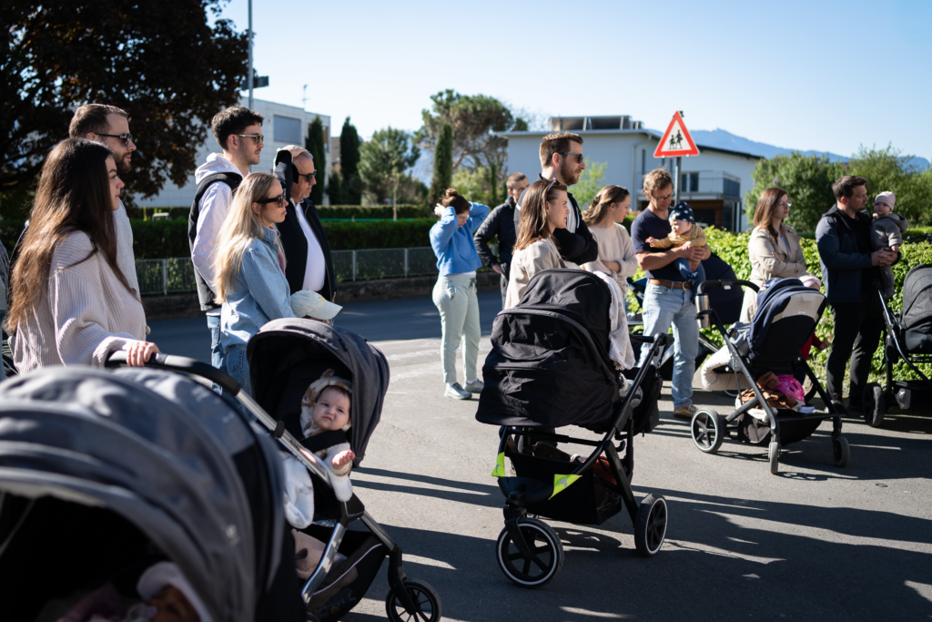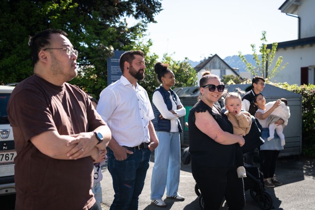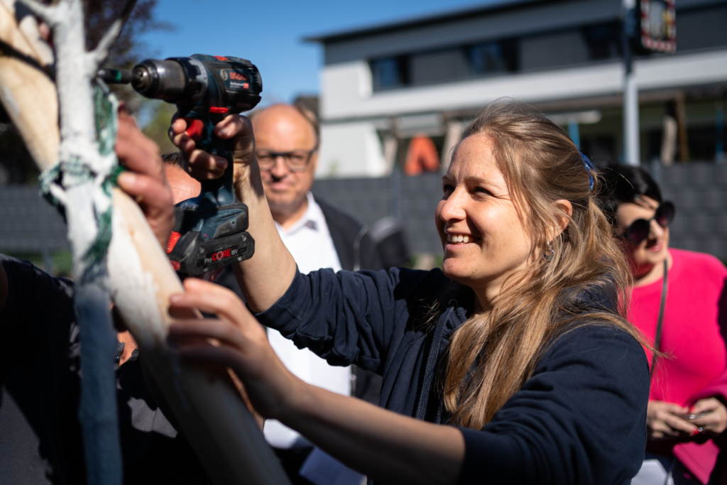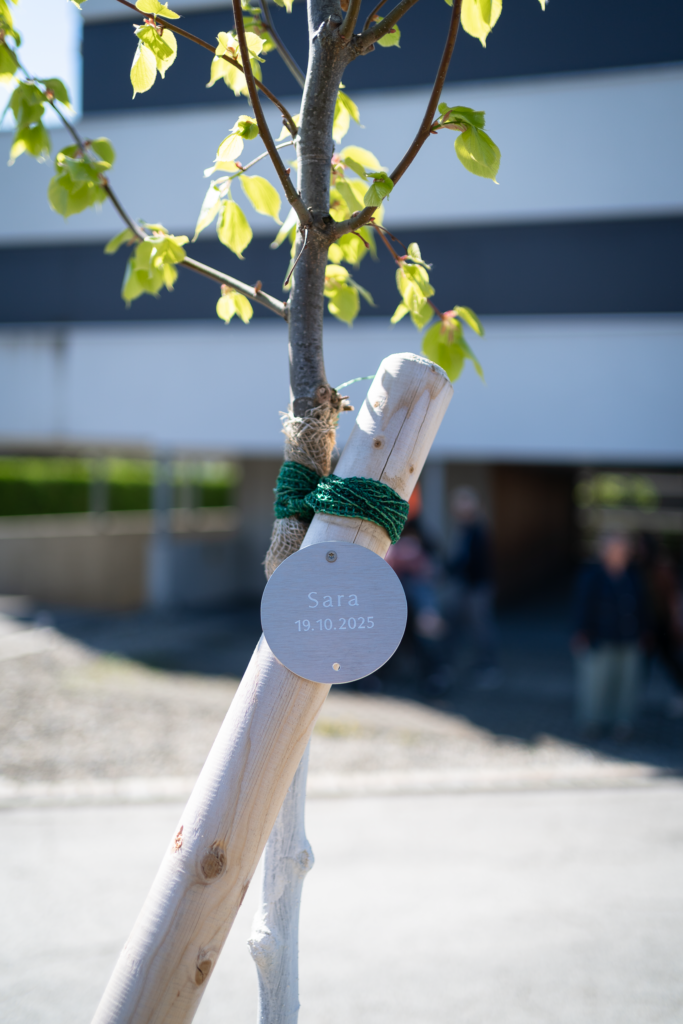 Am Samstag, den 25. April, wurden in der Herrengutgasse 35 junge Bäume unter de, Motto „Wurzeln für die Zukunft“ für die in Lauterach geborenen Kinder gepflanzt. Bei perfektem Frühlingswetter kamen zahlreiche Familien zusammen, um Tafeln mit den Namen ihrer Kinder persönlich an den Bäumen anzubringen.