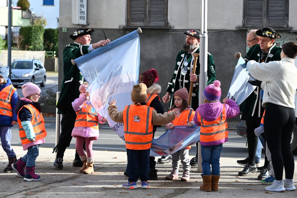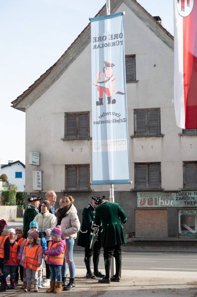 Pünktlich um 11:11 Uhr hissten Bürgermeister Elmar Rhomberg und Thomas Steiner, Obmann der Luterachar Schollesteachar, die Faschingsfahne – tatkräftig unterstützt von den Kindern des Kindergarten Seifenfabrik. Auch die Kinder der Naturspielgruppe ließen sich das Spektakel nicht entgehen und feierten kräftig mit. Nach der offiziellen Eröffnung zogen die Zünfte ins Vereinshaus weiter, um gemeinsam den Faschingsbeginn zu feiern.