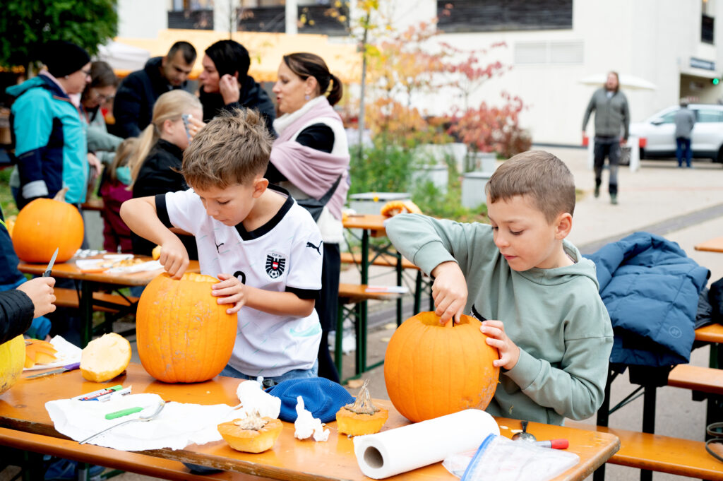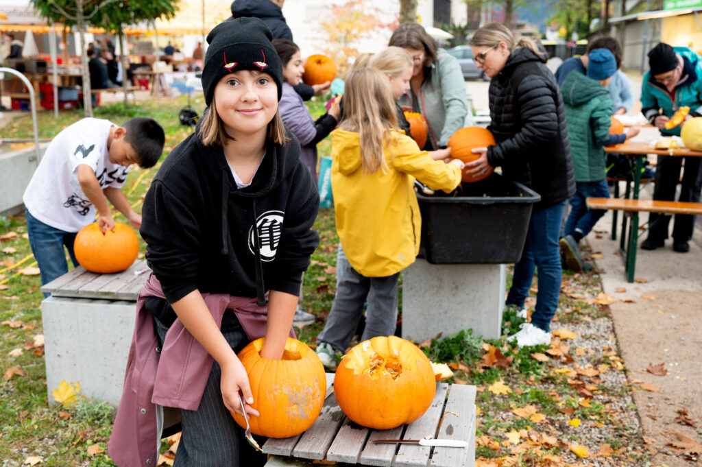 Auf dem Wochenmarkt bei der Säge drehte sich im Oktober alles um Erleben, Entdecken und Staunen: Beim Kürbisschnitzen am 23. Oktober verwandelten Schüler:innen der Schule Unterfeld und der Volksschule Dorf sowie Kinder aus der Kleinkindbetreuung Sunnadörfle die von Kölles Market Garden bereitgestellten Kürbisse in fantasievolle Kunstwerke.