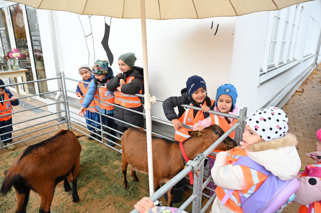 Eine Woche später sorgte der Streichelzoo mit Hasen, Ziegen und Meerschweinchen von Martin Feurstein für leuchtende Augen bei den Kindern aus den Kleinkindbetreuungen Sunnadörfle und Rappelkiste sowie dem Kindergarten Seifenfabrik.