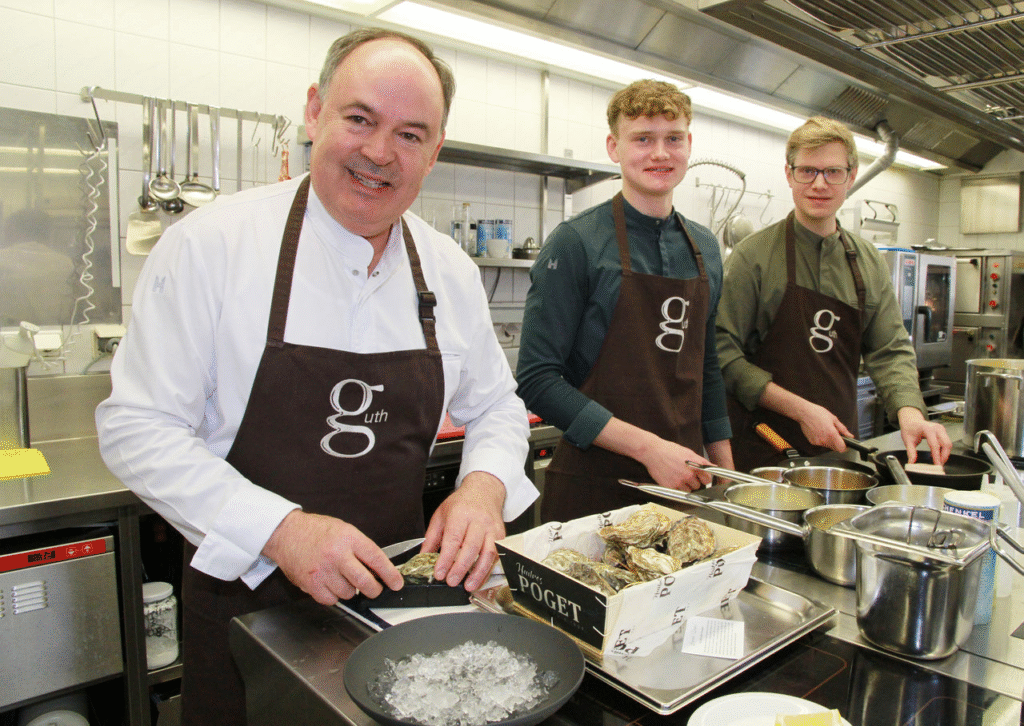 Das Jahr 2025 begann für das Lauteracher „GUTH“ mit einer gastronomischen „Oscar-Verleihung“. Der Guide Michelin hatte in den Hangar 7 in Salzburg zur Entgegennahme der Sterne geladen. Es wäre nicht Thomas Scheucher, würde er dieses Lob nur für sich verbuchen. Er reicht die Lorbeeren gleich an sein Team weiter, weil ohne Team in der Gastronomie gar nichts laufe. Dabei hebt der Chef seinen jungen Küchenchef Pascal Petschenig hervor, der mit Beginn dieses Jahres diese Funktion übernommen habe. „Das GUTH“ sei kein klassisches Sterne-Lokal, weil es nicht nur das eine Menü gebe, sondern ebenso die klassische österreichische Küche mit Wienerschnitzel, Kaiserschmarren, Beuschel oder Kutteln, was von der Fangemeinde sehr geschätzt werde.