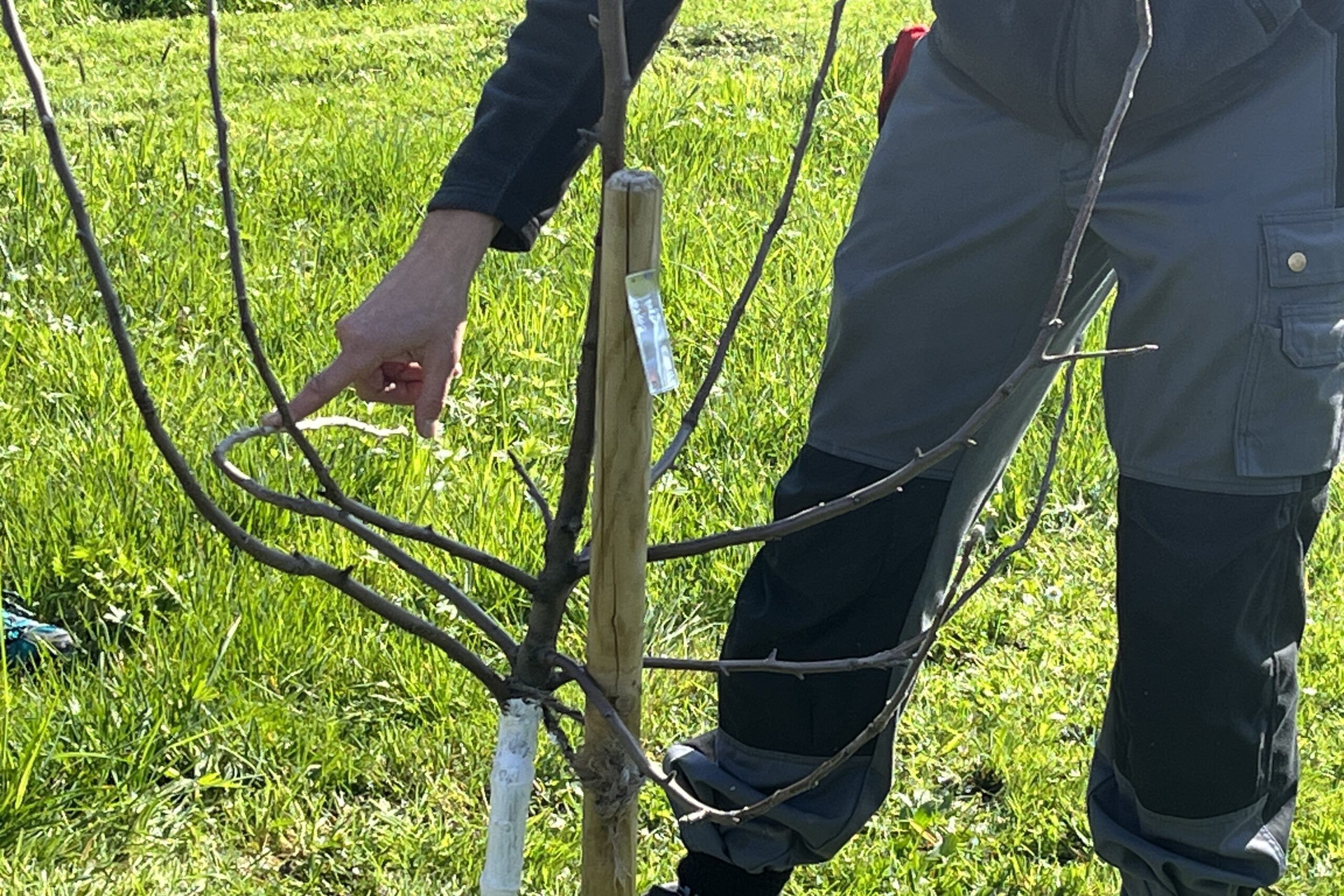 Der Referent Siegfried Rohner zeigt uns den Erziehungsschnitt an jungen und mehrjährigen Spindelbuschbäumen und entsprechende Pflegemaßnahmen.